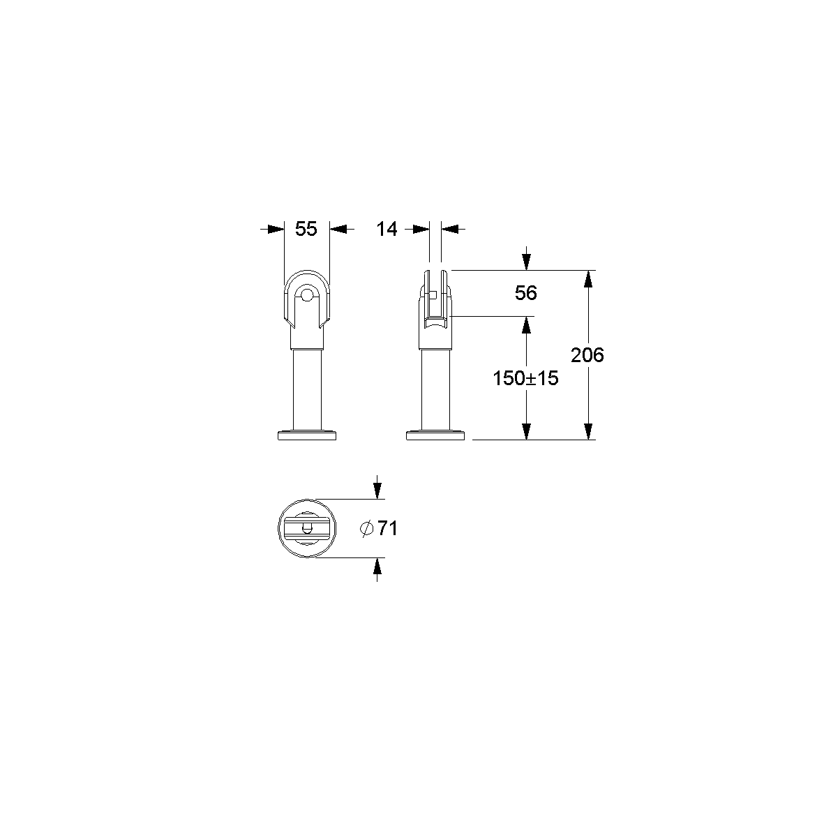 • Composé d'un support de plaque, d'un tube, d'une partie supérieure de rosace Ø 70 mm et d'un socle