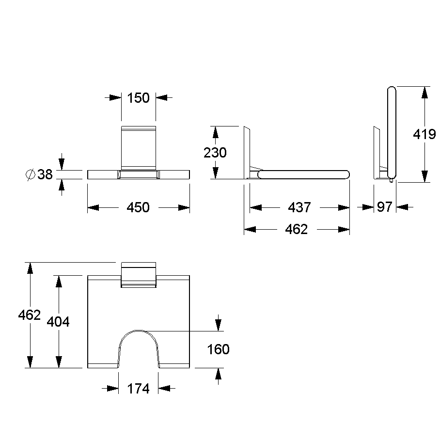 - Breite Sitzfläche : 450 mm