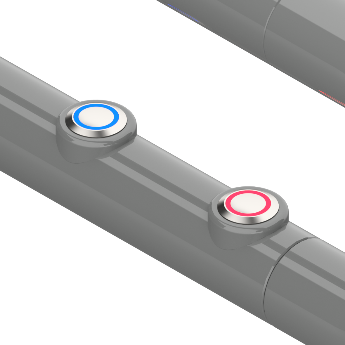 - E-Taster mit LED: LED Farbe blau für WC-Spülung, LED Farbe rot für RUF, dauerhaft leuchtendes LED Licht sorgt für verbesserte Auffindbarkeit und Orientierung, Anschlusskabel 8-adrig 0,14 mm² für Steuerspannung bis 24 V, Schutzklasse IP67